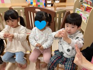 真似をして手を合わせたり指を絡めたりして