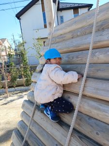 1人では難しい遊具がたくさんあるので、傍に付いて行っています。