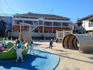 色んな遊具があり興味を持って遊ぶ子どもたち。