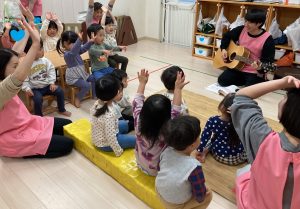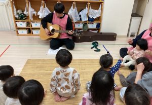 先週、2歳児のお友だちは、ギターの音でリトミックを行いました❢❢