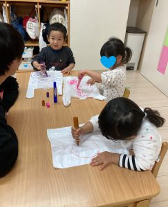 先日みのり組は、ビニール袋にお絵描きをして