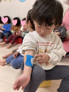 「おにのパンツ」や「まめまき」の歌をうたった後は、前もって作っておいた”柊ブレスレット”を装着!