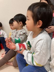 まず初めに先生から、豆まきの由来や、鬼が苦手な”大豆””イワシの頭が付いた柊”の話しを聞きました!