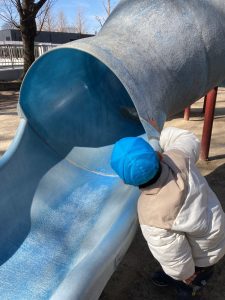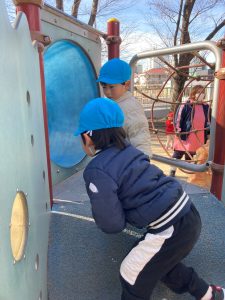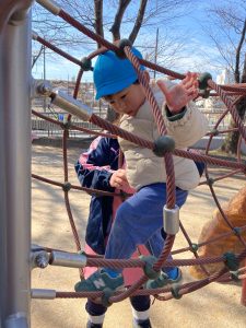 網の渡ったり、滑り台をしたり…、たくさんたくさん体を動かして遊んできました~