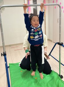 最初は、鉄棒のぶら下がり! 10まで数える間しっかりぶら下がることができていました。