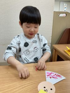その後、のりをつけた台紙に、切ったものをつけていきました!