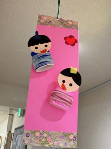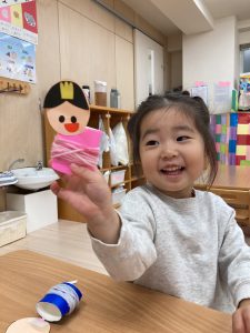のぞみぐみのお友だちは、毛糸でぐるぐる巻いた後、冠などをペタペタ。
